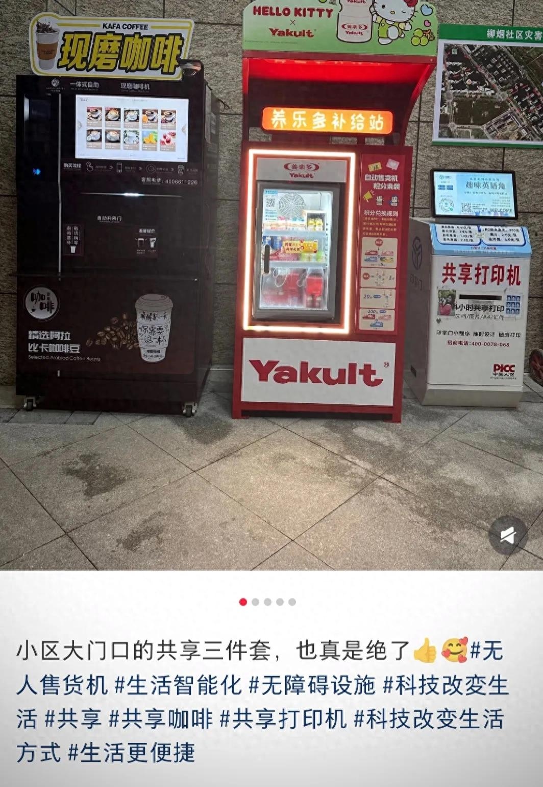 “无人咖啡+无人打印+自助售货柜=好小区标配”。