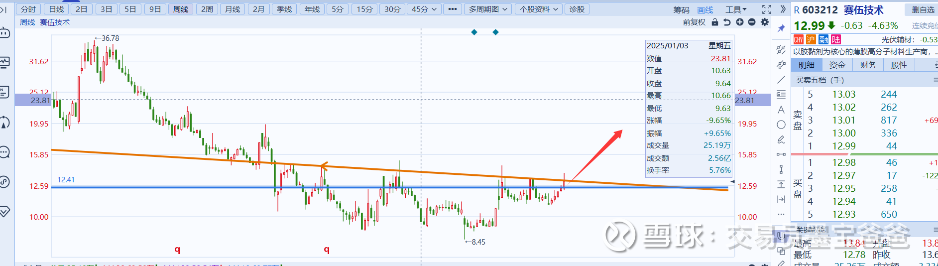 $赛伍技术(SH603212)$ 回调无需担心,12.45附近可以继续低吸。趋势不改,目标不变公司有望第二极增长曲线:非光伏材料业务持续高增,为公司新增长极:公司非光伏材料业务25Q3实现营收约2-2.5亿元,其中新能源材料业务25Q3营收约1.8亿元,同增50%+,同时公司积极布局固态电池材料、储能材料等新品,未来有望贡献新增长。消费电子材料及半导体材料26年也有望实现新突破,非光伏材料业务高速增长,逐步成为公司重要增长极
