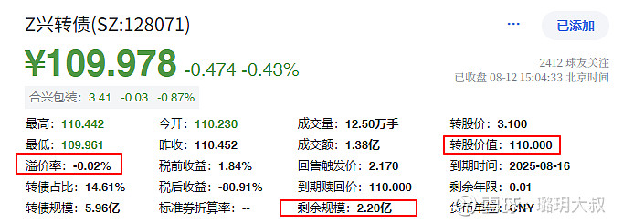 又看了一眼可转债的情况,转股价值110,到期赎回价110,当前股价3.41。