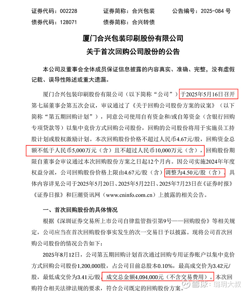 晚上,公司出了回购报告,2025年5月16日说要回购5000万~1亿,一直拖到可转债交易最后一天,才回购了首笔400万,还有4600万~9600万的额度可以用于回购。真是老六。