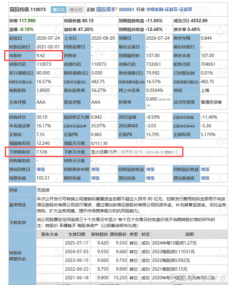 当前转股价9.42,下修触发价7.536,也就是要低于7.54。难怪最近压股价,是为了满足下修条件。未来1-2个月要忍忍,等公司下修到底。