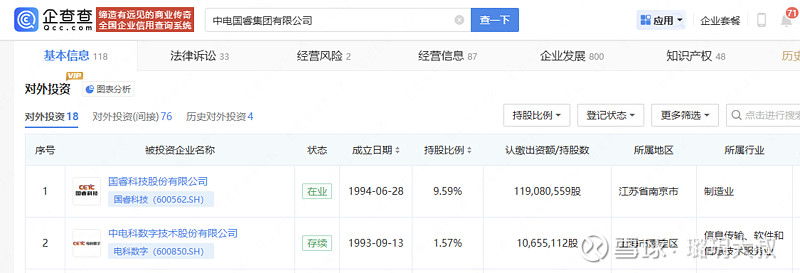 中电国睿的大股东是中国电子科技集团有限公司,旗下上市公司很多:
