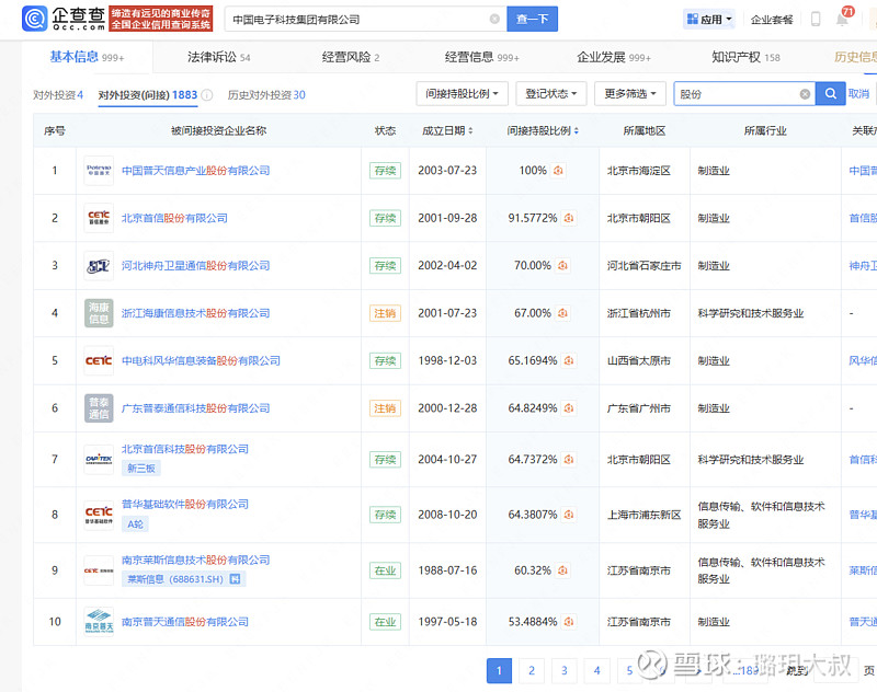 $宁通信B(SZ200468)$ 南京普天通信股份有限公司,纯B股,大股东中电国睿集团有限公司。大股东旗下上市公司,中电国瑞占股都不高: