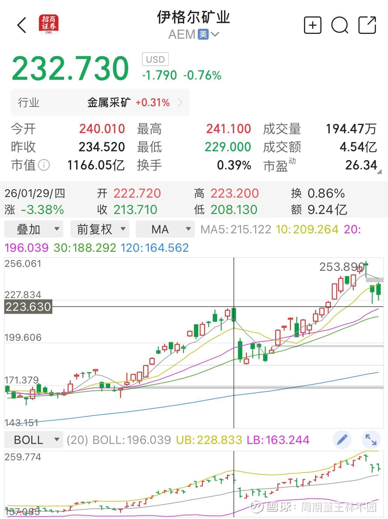 伊格尔最高涨至253.89,高于一月底高点10%以上,现在虽然回调,但依然高于一月底的价格。