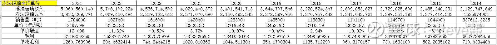 目前在用浮法生产线,国内9条,美国2条,未来合肥、美国各新增2条浮法线,按照每条产能15万吨一年计算,未来有225万吨一年,比现在产能增长约40%。单价方面,过去十年平均增速3%,未来保守估计单价不涨,则消耗产能后浮法玻璃营收约为80亿元。