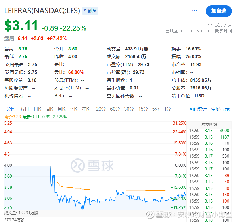 Leifras在纳斯达克上市,股票代码LFS。该公司以每股4美元,发行了125万股,募集了500万美元。