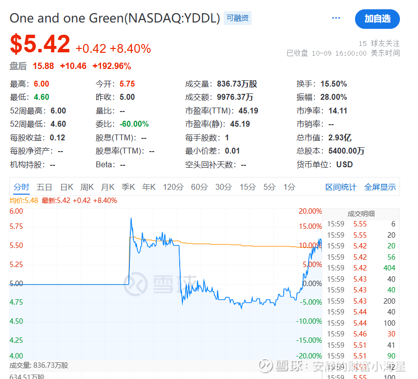 One and One Green Tech在纳斯达克上市,股票代码YDDL。该公司以每股5美元,发行了200万股,募集了1000万美元。