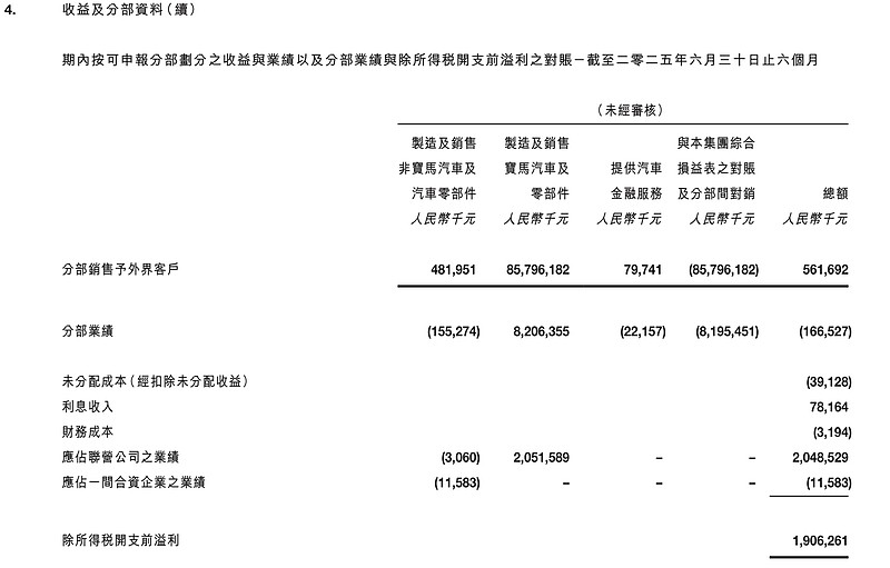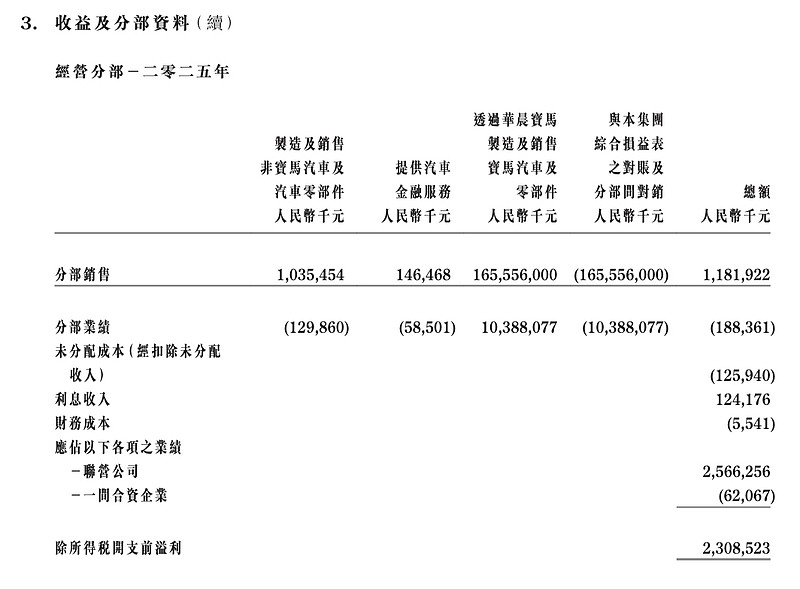 应占华晨宝马净利润25.7亿;