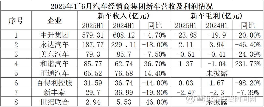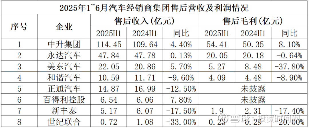 财报显示,2025年上半年,八大4S集团的售后收入依然保持庞大规模:中升114.5亿、永达47.8亿、美东22亿、正通14.8亿、和谐10.6亿、百得利6.5亿、新丰泰5亿、世纪联合0.7亿。4家小幅增长,4家营收下滑,且跌幅多在10%以上。