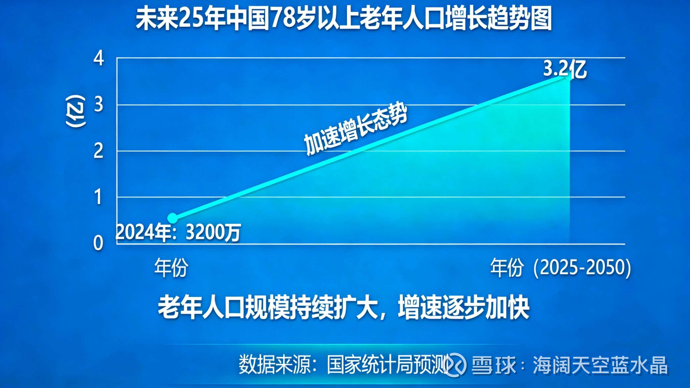 中国78岁以上老人现在约3200万,25年后将突破3.2亿,整整翻10倍。