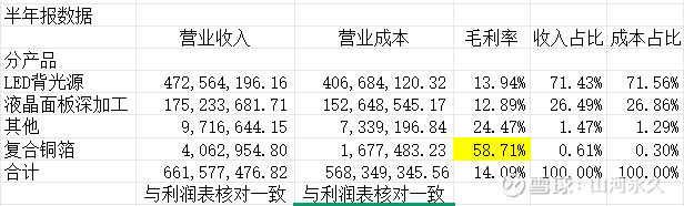 首先,我们看半年报中公司的收入分产品披露,公司很鸡贼地不披露复合铜箔产品的毛利。