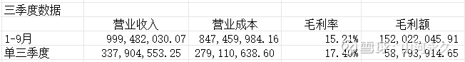 再看三季报数据,我们用三季报数减去半年报数,得出单个三季度的收入成本及毛利情况。