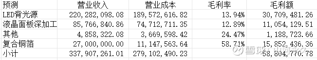 假设毛利率和半年度一样不变,经过我自己多次的产品结构毛利分配测试,预测宝明三季报产品结构如下,基本和三季报收入成本毛利对上。大家有兴趣可以自己去估计一下,我只为大家提供挖掘分析思路。