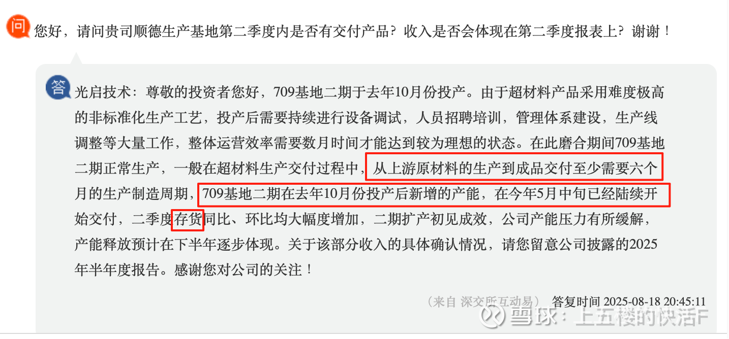 上一篇文章(简单说一下光启技术2025年中报的存货)根据2025年中报的情况,通过营业成本和存货变化预测中报存货。那么如果有每个月投产的产量,投产-存货-确认收入两段时间,以及存货-营收-净利润的关系,则可以相对准确的推断出2025年的年度净利润。
