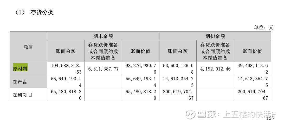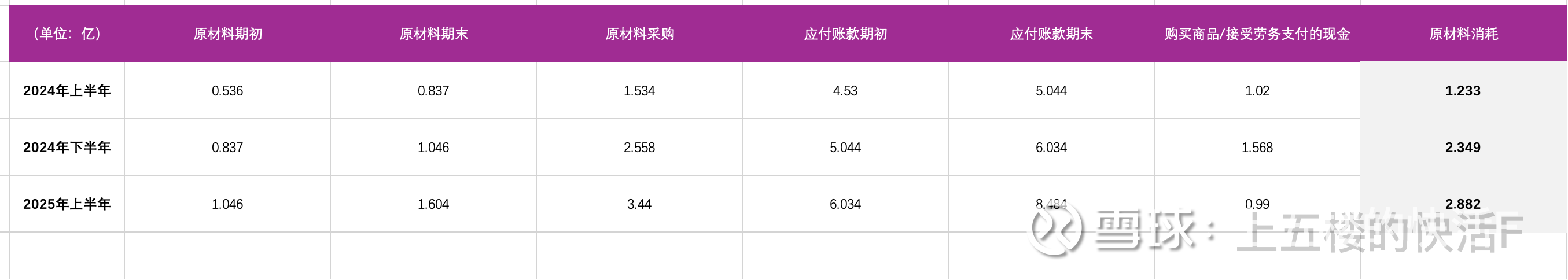 我们将原材料购买约等于采购金额,则可估算出实际每半年的原材料消耗如下: