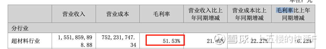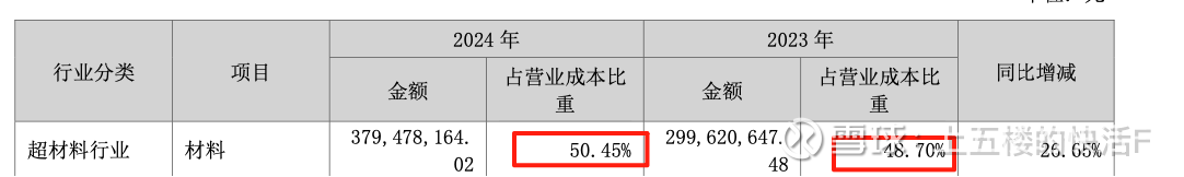 材料/营业成本=50.45%;营业成本/营业收入=51.53%,营业收入/净利润=40.9%