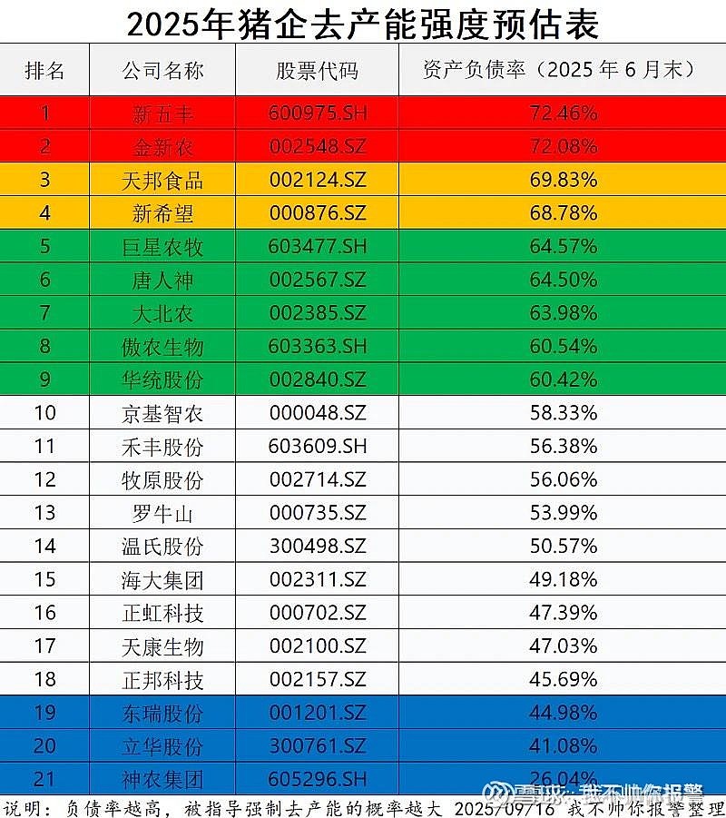 当猪价持续在低位徘徊时,下面这张图就该值得重视(最新财报发布后排序亦会大体相同),明显硬伤的不建议碰,逻辑上会有瑕疵,不易形成合力。