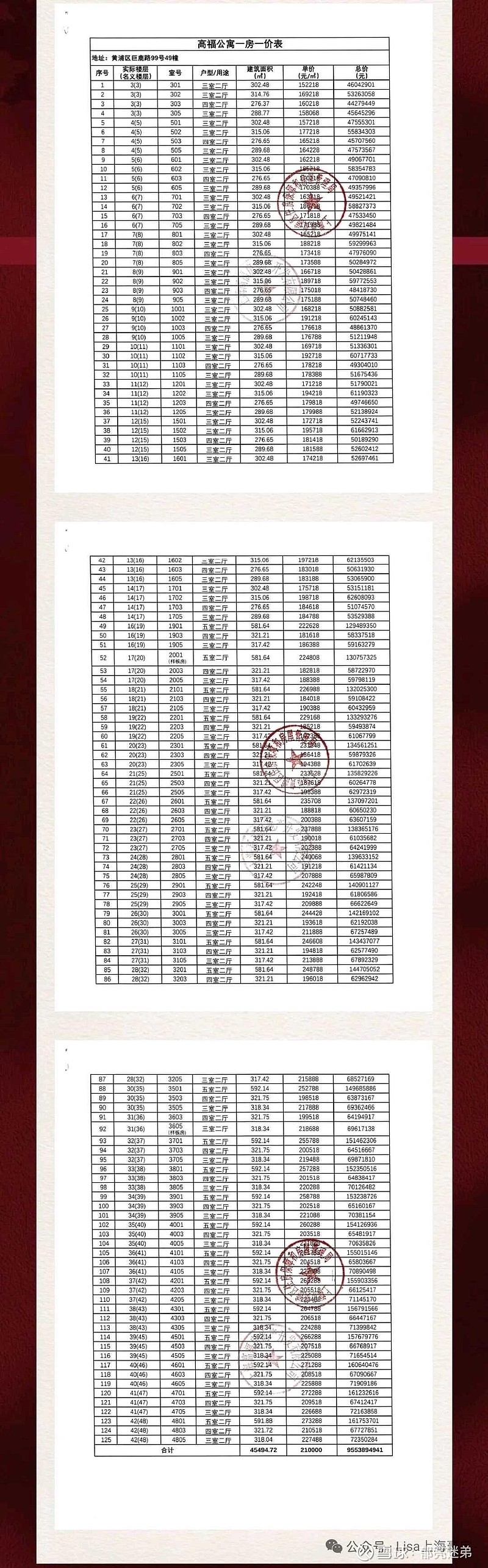 房源总价分布呈现明显梯度:25套亿元级大宅全部位于东楼16层及以上,面积近600㎡,总价1.3亿至1.62亿元;其中42层4801号房源总价最高,约1.62亿元,单价约27.33万元/㎡。其余100套房源总价均在7000万元以下,面积300㎡左右,分布于西楼及东楼低区,最低总价约4428万元,对应西楼303单元,单价约16.03万元/㎡。项目东向可远眺陆家嘴“三件套”,但受金鹿大楼遮挡,低区视野受限,价格因此拉开差距。$万科A(SZ000002)$ $万科企业(02202)$