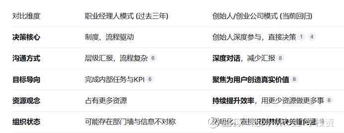 当前智能汽车行业技术(尤其是AI)快速迭代、格局未定,这正需要创业公司的敏捷和高效,而非稳定环境下运行的职业经理人体系。核心转变对比如下: