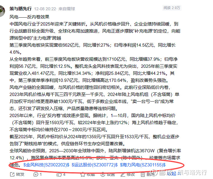 $金风科技(SZ002202)$ 涨停,$海力风电(SZ301155)$ 大涨8%,双一科技涨超6%,泰胜风能、中环海陆、运达股份、$大金重工(SZ002487)$ 等跟涨。