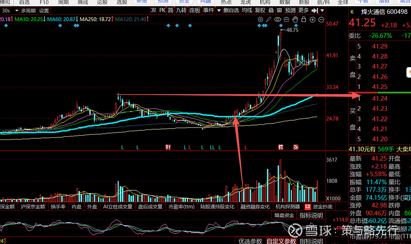 $烽火通信(SH600498)$ 突破60日就做了,在前高都走了