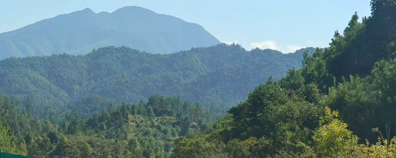 中秋归乡,公路远山如画。乡间稻田稻茬静立,山林圆月相映。