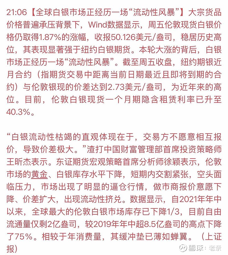 伦敦白银现货一个月的租赁利率达到40.3%;