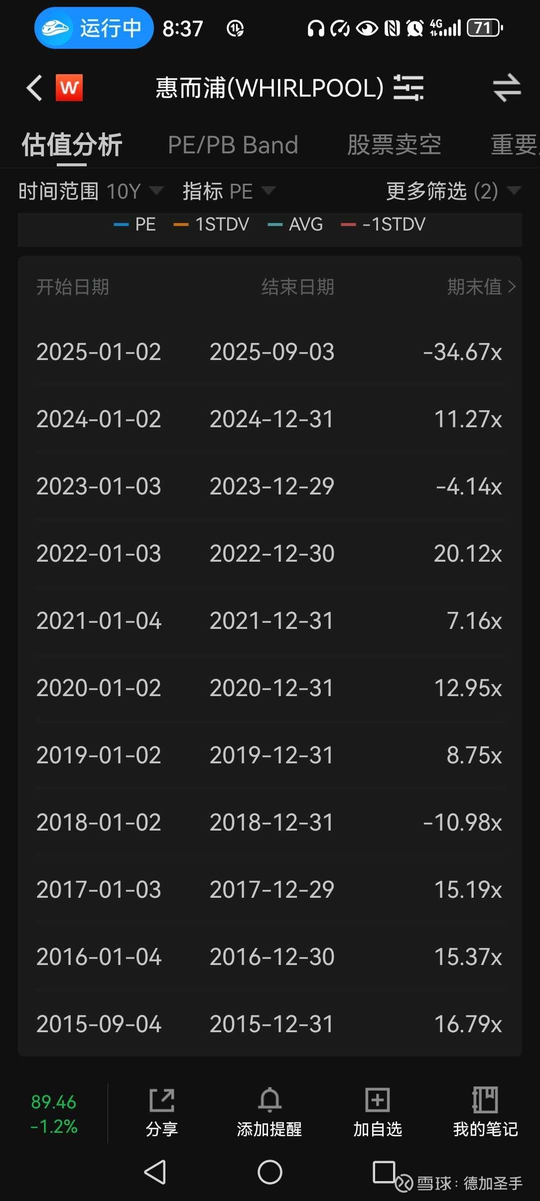 基本平均这10年下来就是10倍出头,趋势上这估值越给越低。我觉得这足够说明问题了吧。