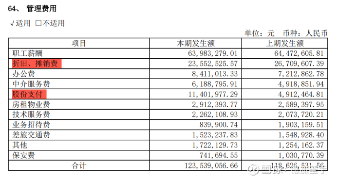 延伸一下,关于巴比净利率提高这个问题,我觉得还有一些东西可以关注。巴比上市后,最高峰净利率出现在2021年,为22.77%。虽然不指望未来净利率会回升到这个高度,但至少空间上有指引作用。我个人判断,巴比的净利率未来依然会继续提升,但可能幅度不会特别剧烈,比如年增长0.5pct这样的程度。当然,净利率提升的推演相对主观,我提一个角度做参考,就是管理费用率。从上表可以看到,忙忙的管理费用率约为1%,而巴比高达7.39%,是忙忙的6-7倍。当然,两者出现这样的差距是正常的,因为巴比的本质是制造业+餐饮,总部的人力、资产很重,这是制造业本身特点带来的,而忙忙则是“轻资产全国渠道+高度标准化”的零售加盟模式,不需要自己制造生产,所以整体相对巴比会非常轻快。从管理费用率这个角度,如果拆开来看的话,我认为未来巴比的管理费用率存在持续下降的可能,理由来自于2024年年报,管理费用明细的这两个红框: