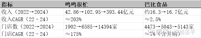 以我现在对这个行业的理解,我觉得决定一门加盟生意好不好做的核心盈利指标,是毛销差和净利率。这方面巴比显著领先: 毛销差: 鸣鸣很忙:7.6%毛利率-约3.8%销售费率≈3.8%毛销差,这3.8个点还要覆盖管理费用、仓储物流、折旧与税费,留给加盟体系和总部的安全垫非常有限。 巴比:26.71%毛利率-4.29%销售费率≈22.42%毛销差,远高于鸣鸣很忙,为持续投入门店支持、品牌、研发及抵御成本波动提供了极大的空间。 净利率: 鸣鸣很忙:净利率2.1%,2025前三季度经调净利率提升到3.9%,虽有改善,但依旧是极度脆弱的薄利结构。 巴比:2024年归母净利率16.5–16.6%,2025Q3扣非净利率14.17%,在收入增速仅中等的背景下还能提升净利率,显示出极强的经营杠杆和成本控制能力。