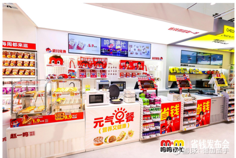 引入鲜食、百货日化、文具潮玩等品类,通过一体化货架提升坪效,说白了就是可以摆放更多的货,让200平可以展示接近300平的商品量。其核心逻辑是提高客单价与复购频率,将“买零食”变为“逛超市”;为已过密的零食门店提供结构性提升的空间;透过更宽的品类组合摊薄租金和人工成本,改善单店利润。从结果上来看,省钱超市的效率提升明显,甚至可以说,省钱超市的模型会逐步取代一代店那种纯零食店模型。