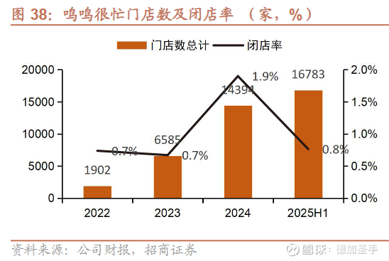 连锁加盟,核心是加盟商的生存状态如何,这决定了这个生意目前是否健康。而且由于连锁加盟的高杠杆率(不需要自己出什么钱,就能实现扩张,动用的都是社会资本),其正向模型转动起来时,曲线会加速上扬;但同理,一旦落入负增长模型,由于杠杆的双刃剑属性,咔嚓一下就掉崩了,也是常态。当下时点来看,根据多方资料显示,鸣鸣很忙和行业其他量贩零食品牌早期都曾有不到一年回本、门店净利率10%以上的阶段,这也是吸引加盟商快速入场的核心卖点。然而随着竞争加剧与门店密度提升,加盟商忙而不富的情况变得越来越普遍,高投资低毛利,等于是为公司和房东打工,量贩零食行业的回本周期显著拉长、闭店增多,一年回本越来越少,即使省钱超市模型提高了坪效,但更高的投资门槛(至少100万起步)还是让加盟商增加了更多顾虑,数据显示,鸣鸣很忙闭店率从0.7%左右升至1.9%,再下降至2025H1的0.8%(非全年,不完全可比):