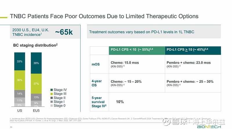 2025年第48届圣安东尼奥乳腺癌研讨会SABCS2024(San Antonio Breast Cancer Symposium),将于2025年12月9日至12日在美国圣安东尼奥举行,由BioNTech研发的PD-L1/VEGF双抗Pumitamig再次更新了三阴乳腺癌的临床数据。一年前的会议期间,BioNTech和康方分别更新了各自产品一线治疗三阴乳腺癌的数据(