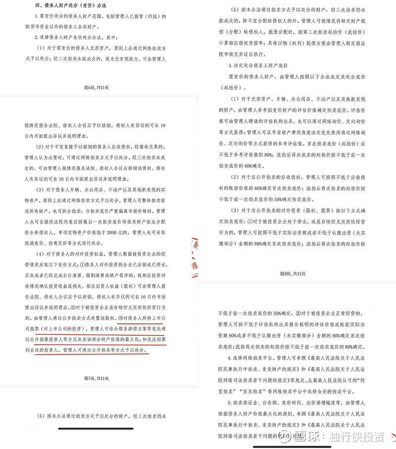 卓越投资破产 债权人第一次会议投票表决通过的《债务人财产管理和变价方案》中关于债务人财产变价方案内容:附件第四条!