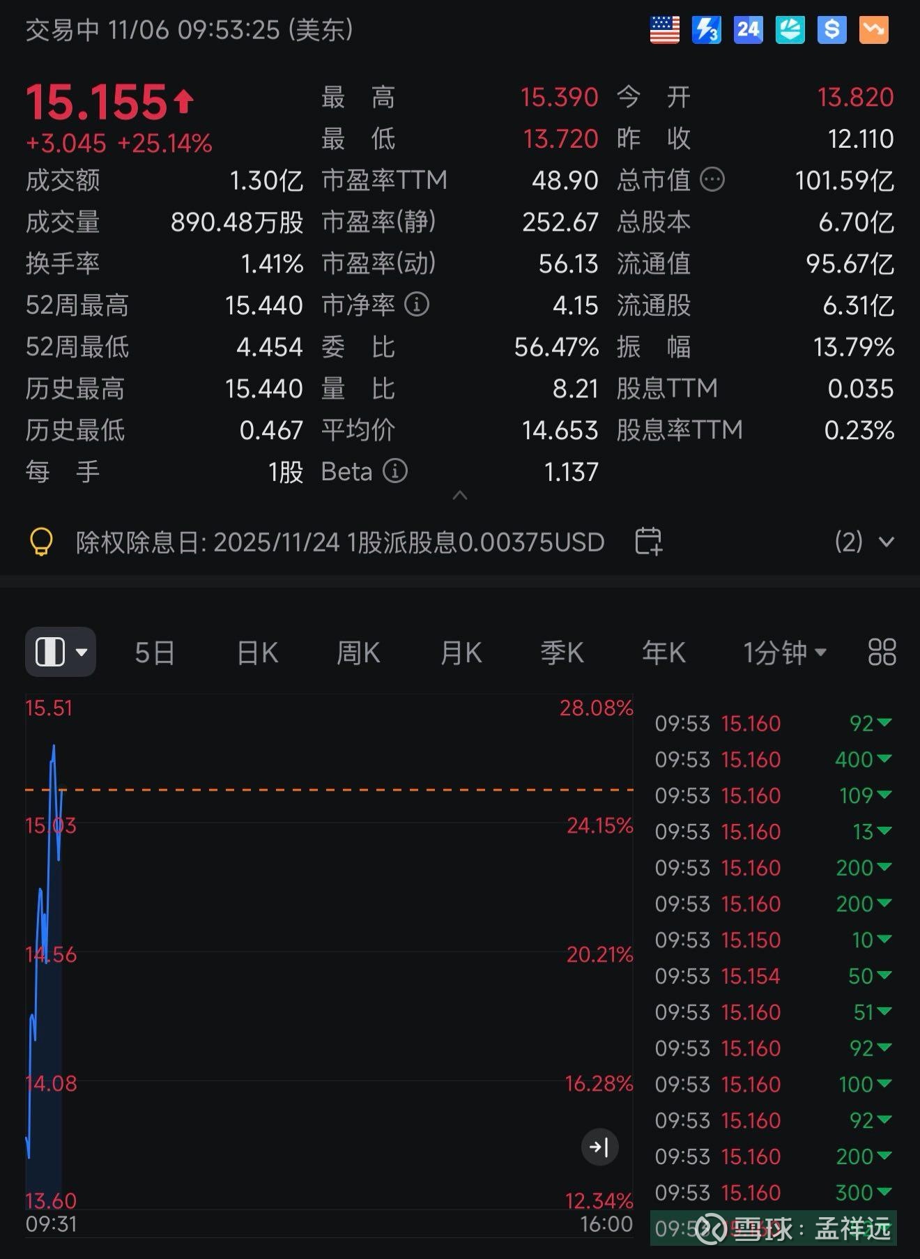 美股效率高,这段时间很关注的银矿企业今天开盘最高暴涨 27%。