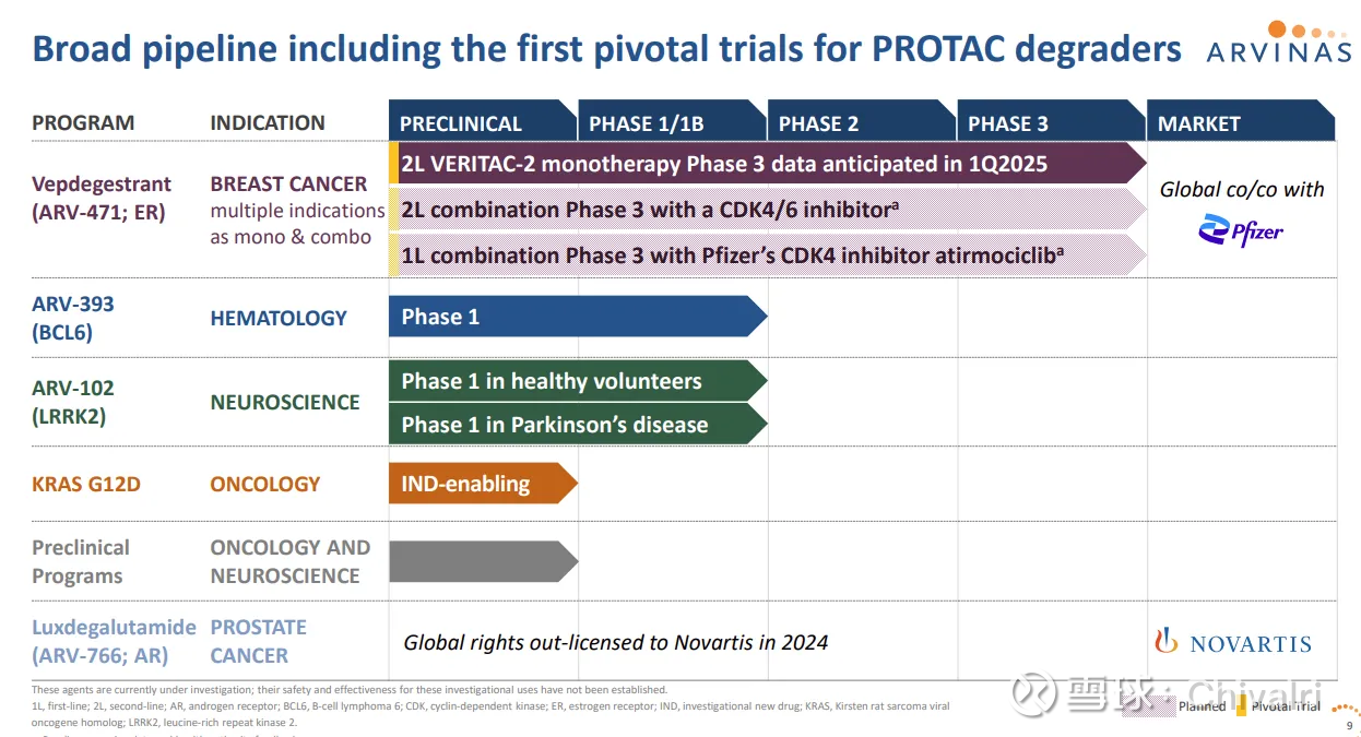这里需要了解一些历史:ARVN 在 2021 年就 Vepdeg 与辉瑞(Pfizer)达成合作;作为未来获得该药物大约一半权益的回报,辉瑞向 ARVN 提供了以下条件: