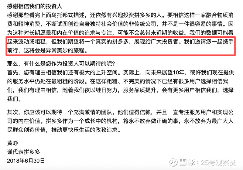 长期商业模式的股东,我也认为黄峥没有很好地兑现上市时的承诺。