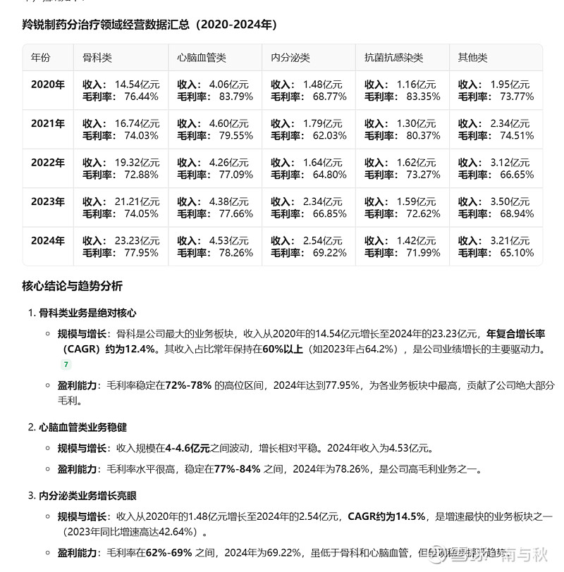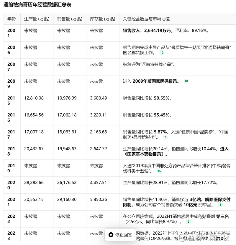 把能找到的羚锐的历年年报扔给IMA知识库,统计了历年来的一些有意思的经营数据,如下图