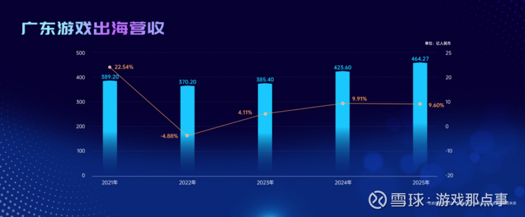 2025年,广东游戏出海营收规模达到464.27亿元人民币,同比增长9.6%,与去年基本持平,又实现了一年的快速增长。
