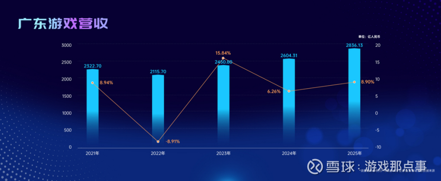 3.具体到广东省的数据,2025年,广东游戏产业(包括移动游戏、客户端游戏、网页游戏和其他游戏)预计收规模将达到2836.13亿元人民币,比去年同期增长8.9%,占全国占全国的80.85%。