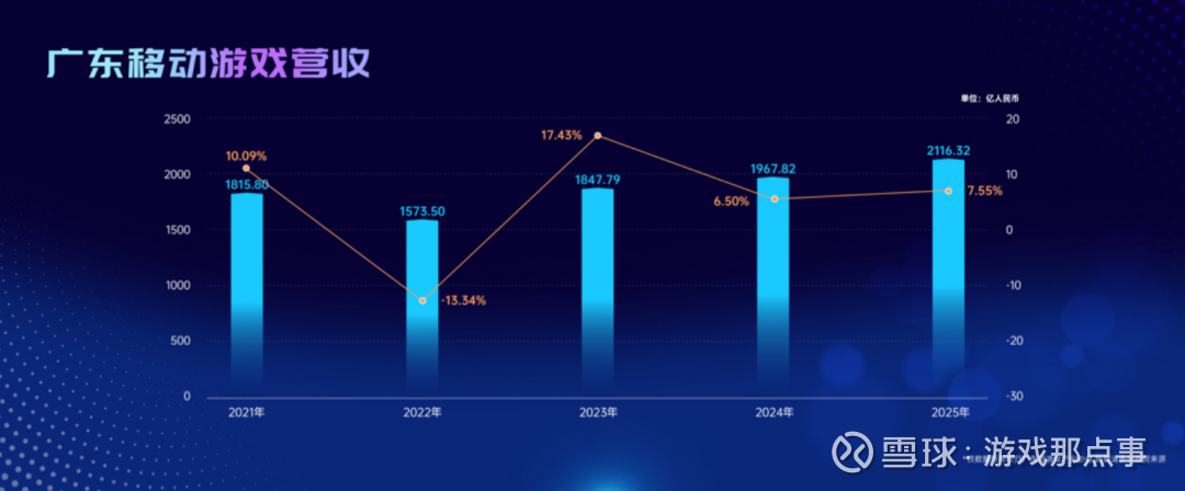 据《报告》数据显示,广东移动游戏作为产业 “压舱石”,2025 年营收首次突破2000亿元大关,达2116.32亿元,同比增长7.55%,占全省总营收的74.62%、全国移动游戏收入的82.32%,领先优势明显。