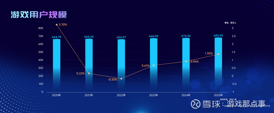 2025年我国游戏用户规模预计将达到6.83亿,用户群体规模连续三年保持回升态势,比2024年增长1.35%,但我国游戏用户规模处于存量市场阶段的趋势并未改变。