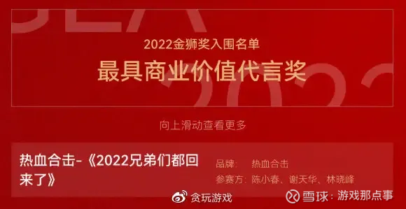(2022年《热血合击》入围了金狮奖「最具商业价值代言奖」名单)