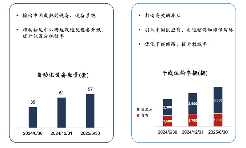 H1披露显示,公司将中国成熟的设备与系统直接复制到东南亚,持续升级自动化分拣线与干线车队,叠加路线优化与装载率管理。