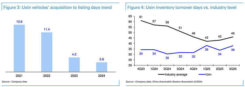 从数据上来看,据德银报告,优信2025Q3库存周转天数约38天(行业平均约45–50天),毛利率稳定在7–8%,并高于行业平均水平。