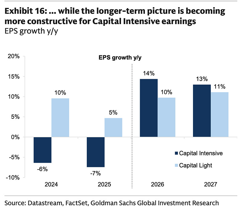 高盛在最新策略报告中指出,市场正在重新定价那些拥有产能、网络和基础设施的企业,因为这类资产通常难以复制、建设周期长,而且技术替代风险较低。