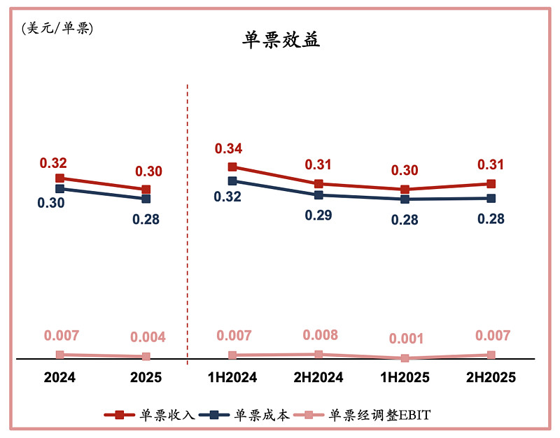 但过去几年最伤行业估值的,是以价换量把利润预期打穿。2025年下半年在“反内卷”政策推动下,行业竞争趋于理性,这一点也直接反映到单票经调EBIT指标上。