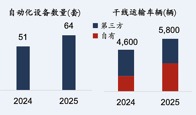 截至2025年底,公司在全球运营246个转运中心,覆盖核心枢纽与区域分拨网络,全球干线车辆规模超1.3万辆,部署413套自动化分拣设备。
