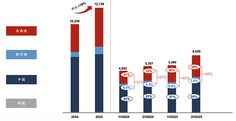 根据公司年报引用三方数据,2025年东南亚电商零售交易额达到3038.5亿美元,同比增长27.5%,电商渗透率升至24.6%;社交电商交易额达到1517.3亿美元,同比增长39.1%,占整体电商交易额的49.9%;快递市场总包裹量达到222.9亿件,同比增长39.5%。