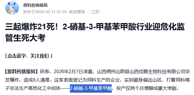 (2)广康生化$广康生化(SZ300804)$ :在建2- 硝基-3-甲基苯甲酸产能为5250 吨/年。